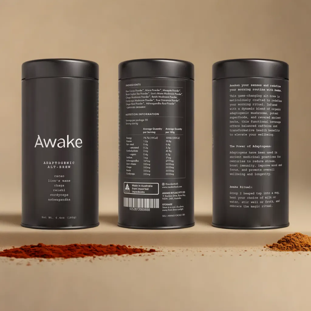 This game-changing coffee alternative is meticulously crafted to redefine your morning, midday or afternoon coffee ritual. Infused with a dynamic blend of organic functional mushrooms, potent superfoods and revered ancient herbs, each sip of Awake doesn't just taste great; it brings a you a better buzz.